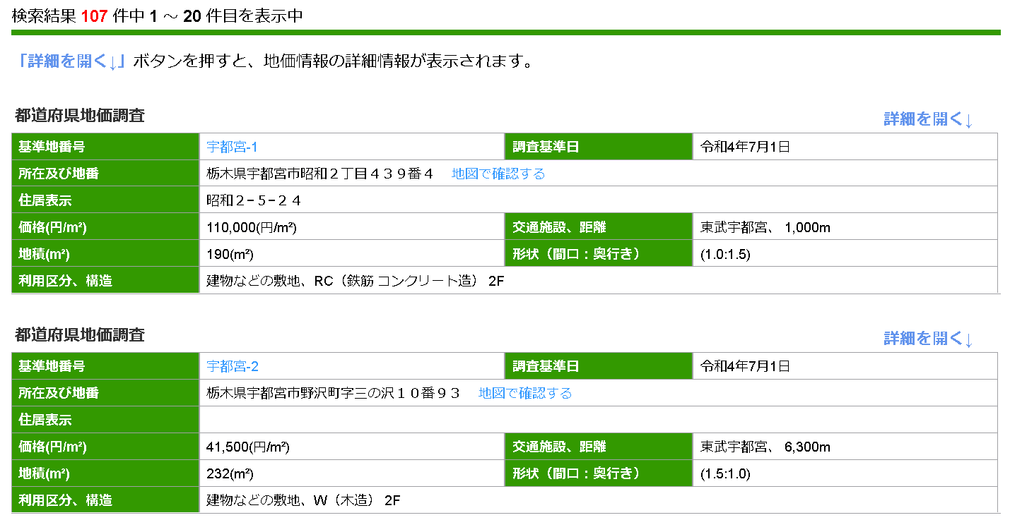 上記のシステムでは毎年1月1日時点の価格調査である公示価格も確認することができますが、今回、公開されたのは都道府県地価調査の結果です。